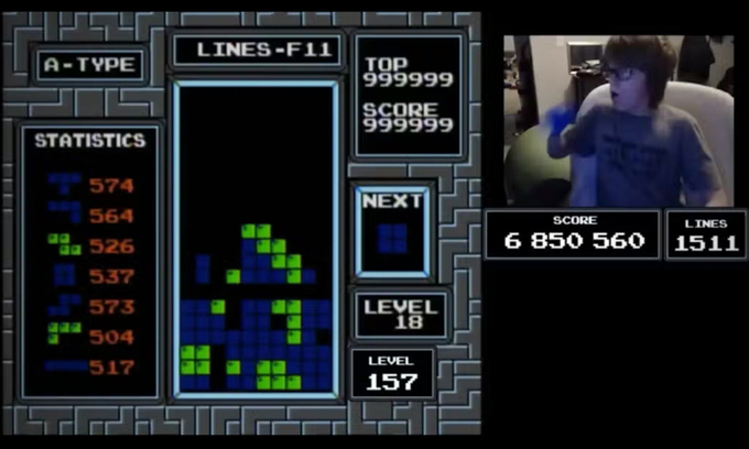 영국 가디언 등의 3일(현지시간) 보도에 따르면 온라인에서 블루 스쿠티라는 이름으로 활동하는 윌리엄 깁슨은 이날 닌텐도 버전의 테트리스를 약 38분간 게임을 플레이하며 마침내 최고 점수를 기록했다. 당초 157레벨이 도달한 뒤 블록을 잘못 놓으며 “아, 놓쳤네”라고 말해 도전이 실패한 것으로 보였지만 위기를 극복한 뒤 블록의 마지막 한 줄 더 완성해냈다. 게임이 멈추고 사실상 승리가 확정되자 그는 “기절할 것 같아요. 손에 감각이 없어요”라면서 환호했다.