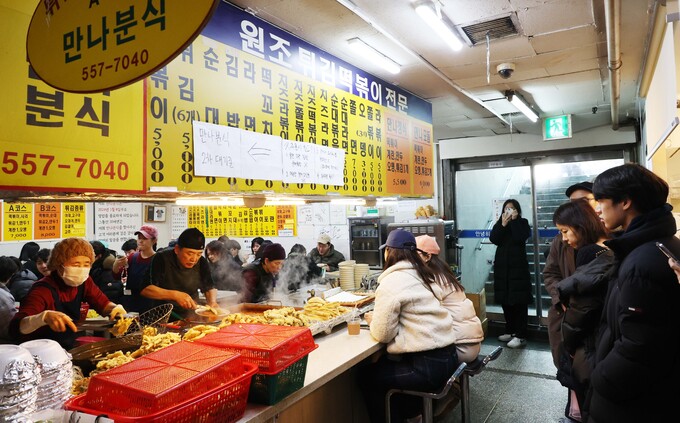 7일 오후 서울 강남구 만나분식에서 시민들이 줄을 서고 있다. 30년 넘게 대치동에서 영업을 이어온 ''만나분식''은 가게를 지켜온 사장 부부가 건강상 이유로 더 이상 장사를 하기 어려워져 이날까지 영업을 하고 문을 닫는다./2024.01.07 서상배 선임기자