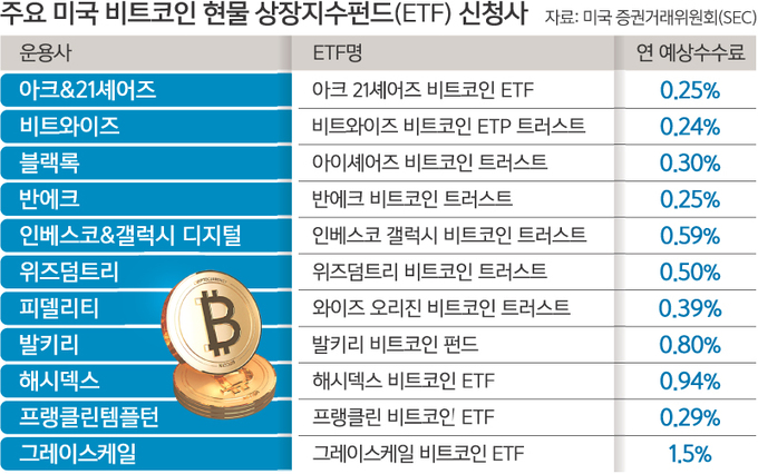 비트코인 현물 상장지수펀드(ETF)에 대한 미국 증권거래위원회(SEC)의 승인 여부가 10~11일 결정될 것으로 전망되면서 비트코인 가격이 들썩이고 있다. 비트코인은 9일 새벽 4만7000달러선을 넘어서 2021년 기록한 최고가(6만8789달러)의 68% 수준까지 회복했다.