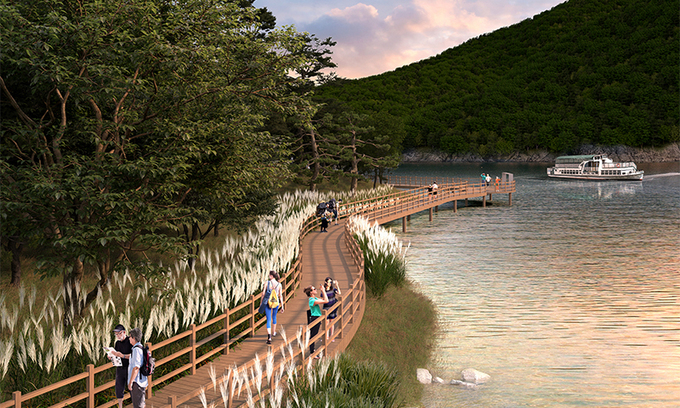 우선 2022년 12월 착공한 순환형 생태휴양길은 올해 상반기 마무리한다. 사업비 70억원을 들여 수상데크(861m)를 포함해 2.3㎞ 구간에 수변산책로와 괴산댐 공도교를 활용한 걷기 길을 구축한다.