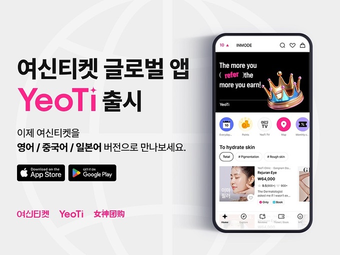 패스트레인은 이번 글로벌 확장을 통해 한국어 여신티켓, 영어와 일본어는 여티(YeoTi), 중국어는 뉘선퇀거우(女神团购)로 서비스를 운영한다. 여신티켓 앱을 설치하면 휴대전화 단말기에 설정된 언어 기준으로 서비스를 제공한다.