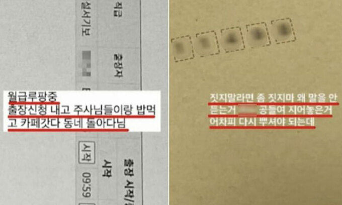 또 A씨는 개발제한구역 내 건축 사안과 관련된 것으로 보이는 공문도 촬영해 올렸다. A씨는 ‘보내는 이’가 양주시청으로 돼 있는 문서들과 함께 “짓지 말라면 좀 짓지 마라”며 “왜 말을 안 듣는 것인가. 굉장히 공들여 지어놓은 것들 어차피 다시 부숴야 하는데”라고 했다. 이어 그는 “아니 무슨 맨날 회식을 하느냐”며 팀 회식 안내문을 찍은 사진도 올렸다. 이 안내문에는 ‘받는 사람’의 소속과 실명이 그대로 노출됐다. 허위 출장에 따른 근무지 이탈과 출장비 부당 수령 등이 사실일 경우 징계가 가능한 사안이다.