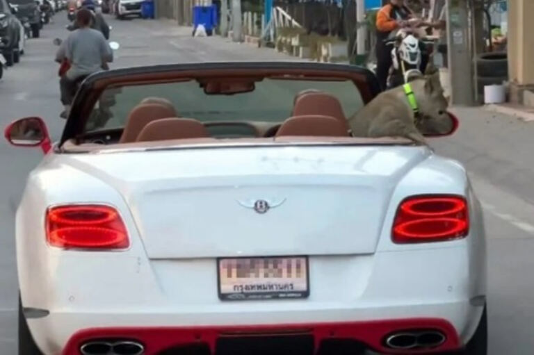 고가의 외제차 브랜드인 벤틀리의 차량에 애완용 새끼 사자를 태우고 시내를 운전한 태국 여성이 징역형 위기에 처했다.