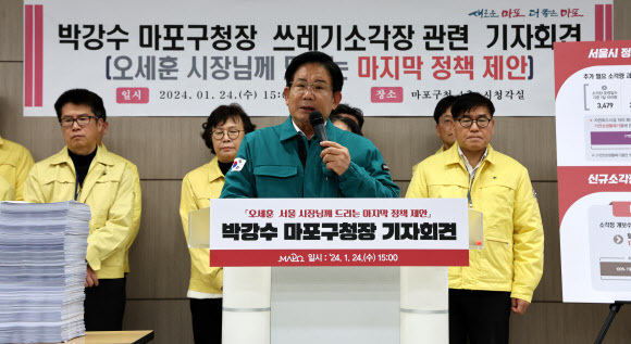 박강수 마포구청장은 전날인 24일 마포구청에서 기자회견을 열어 "마포구는 서울시의 쓰레기장이 아니며 마포구민만의 반복된 희생을 더는 용납할 수 없다"면서 "오세훈 서울시장과 서울시 관계자들이 심사숙고해 이제라도 소각장 추가 건립 철회라는 용기 있는 결단을 내려주기를 바란다"고 말했다.
