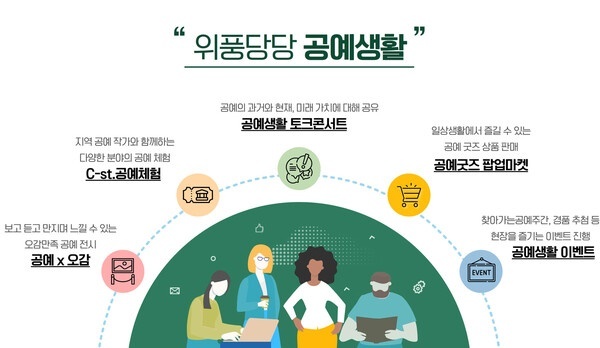 프로그램은 오는 5월 17일부터 10일간 전주한옥마을 일원에서 ‘공예X오감 전시’와 지역 공예인과 함께하는 공예체험, 공예생활 토크 콘서트, 공예굿즈 팝업마켓, 공예생활 이벤트 등을 진행한다.