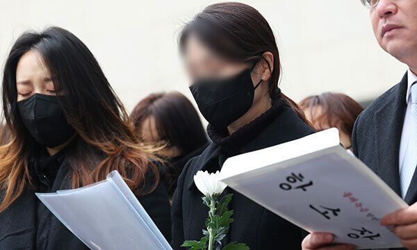이날 기자회견에는 특수교사노조도 참석했다. 이들은 검은 옷을 입고 국화꽃을 든 채 동참했다.