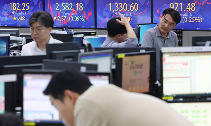 서울 중구 하나은행 딜링룸에서 직원들이 업무를 보고 있다. 연합뉴스