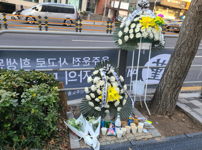 지난 7일 오후 서울 강남구 논현동의 한 인도 구석에 놓인 국화꽃. 막걸리 3병과 담배 2갑 등이 줄지어 놓여있는 이곳은 앞선 3일 음주운전 교통사고로 숨진 배달기사 A(54)씨를 추모하기 위해 동료들이 만든 공간이다. 배달을 나섰다 잠깐 들렀다는 김모씨는 “비슷한 사고로 이미 몇몇의 가장이 목숨을 잃었다”며 “사고 당일 이곳을 지나갔었는데 제가 사고를 당해 죽었을 수도 있다는 생각에 무서웠다. 음주운전자의 처벌이 어떻게 나오는지 끝까지 지켜보겠다. 엄벌을 촉구하는 탄원서도 냈다”고 말했다.