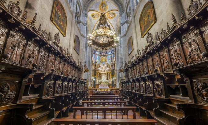 루고 산타마리아 대성당으로 발걸음을 옮겼다. 12세기에 짓기 시작했다고 한다. 이후에도 여러 부속건물을 더 짓는 바람에 로마네스크, 고딕, 바로크 등 다양한 양식이 혼합되었다. 천천히 대성당으로 들어가 본다. 들어가자마자 마주치는 것은 거대한 천장화다. 무척 아름답다. 18세기에 호세 데 테란이라는 화가가 그렸다는데, 복원된 모습이라고 한다.