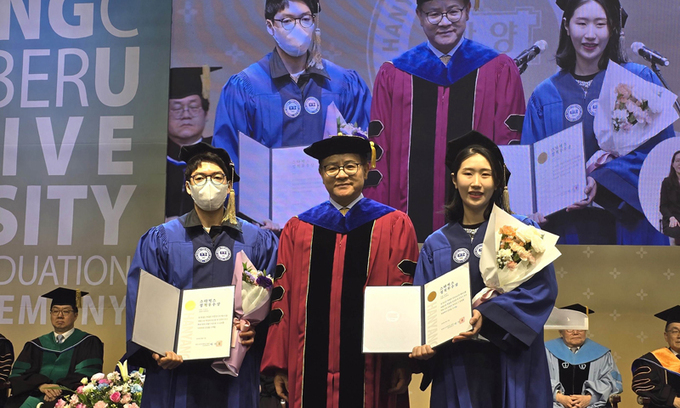 지난 17일 열린 2024년도 한양사이버대 학위수여식(사진)에서 63명의 스타벅스 파트너(직원)가 4년제 학사 학위를 취득했다. 학위 수여식에서는 우수한 성적으로 졸업한 스타벅스 송윤주 파트너, 이명재 파트너가 한양사이버대학교에서 특별 제정한 스타벅스 파트너 성적 우수상을 받기도 했다.