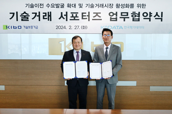 기보는 27일 한국평가데이터와 기술이전 수요발굴 확대 및 기술거래시장 활성화를 위한 기술거래 서포터즈 업무협약을 체결했다고 밝혔다.