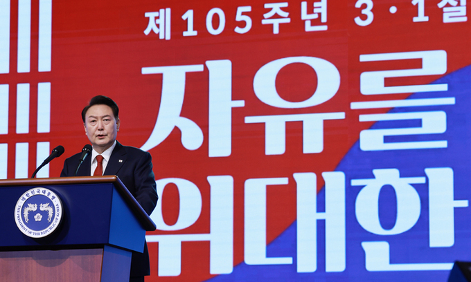 윤 대통령은 “기미독립선언의 뿌리에는 당시 세계사의 큰 흐름인 ‘자유주의’가 있었다”고 전제했다. 이어 “자유와 인권이라는 보편의 가치를 확장하는 것이 바로 통일”이라며 “우리의 통일 노력이 북한 주민들에게 희망이 되고 등불이 되어야 한다”고 덧붙였다. 또 “정부는 북한 주민들을 향한 도움의 손길을 거두지 않을 것이며, 북한 인권 개선을 위한 노력도 멈추지 않을 것”이라고 다짐했다. 남한을 ‘제1의 적대국’이자 ‘불멸의 주적’으로 규정하며 선대의 통일 관련 유지(遺旨)마저 송두리째 내던진 김 위원장에게 준엄한 경고를 보낸 것이다. 동시에 북한이 뭐라고 하든 우리는 북한 주민을 동족으로 여기며 통일 노력을 계속할 것임을 천명했다는 점에서 의미가 크다.