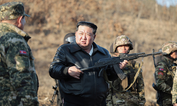 신문은 김 위원장이 소총을 들고 사격 자세를 취하는 모습도 공개했다. 김 위원장은 훈련에 참가한 장병들과 기념사진도 촬영했다.