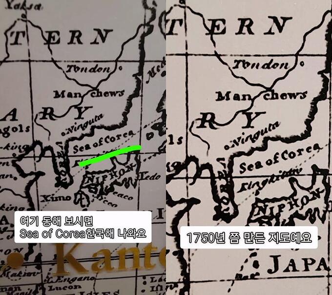 독일 여성이 동해가 Sea of Corea(한국해)로 표기되어 있는 18세기 지도를 발견했다.