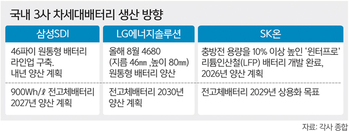 산업부는 2028년 개발을 목표로 총 1172억3000만원을 투자해 전고체 배터리, 리튬메탈 배터리, 리튬황 배터리 등 3개 분야의 유망 기술 개발을 추진한다. 국내 배터리 기업들은 올해 설비투자 7조1000억원을 포함해 총 9조원 이상을 국내에 투자할 계획이다.
