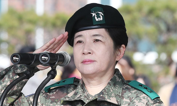 강 전 사령관은 11일 서울 여의도 국민의힘 중앙당사에서 기자들과 만나 더불어민주연합 1번 비례대표 배치와 관련해 “(전 운영위원이) 국회에 입성한 헌법 기관이 되면 우리나라 국가 안보를 위해 정상적인 대화를 하는 게 아니라 그냥 반미 구호만 외칠 것 같다”며 “반미 종북 굴종적 외교”가 될 것이라고 우려했다. 그러면서 “우리가 아직도 적대적인 관계인 북한과 그들의 주장에 동조하는 이들이 국회에 진짜로 입성해서 내부에서 싸우고 힘을 소진하는 상황이 만들어지면 안 된다”고 강조했다. 강 전 사령관은 여군 최초로 2성 장군에 오른 입지전적 인물로 국민의힘이 이번 총선 인재로 영입했다.