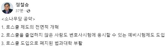 정철승 소나무당 대변인은 14일 자신의 페이스북을 통해 소나무당 공약 3가지를 발표했다.