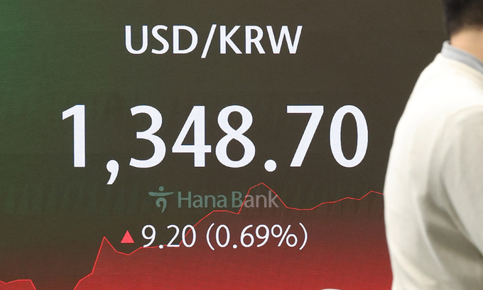 이날 서울 외환시장에서 달러 대비 원화 환율은 전일보다 9.2원 상승한 1,348.7원에 장을 마쳤다.