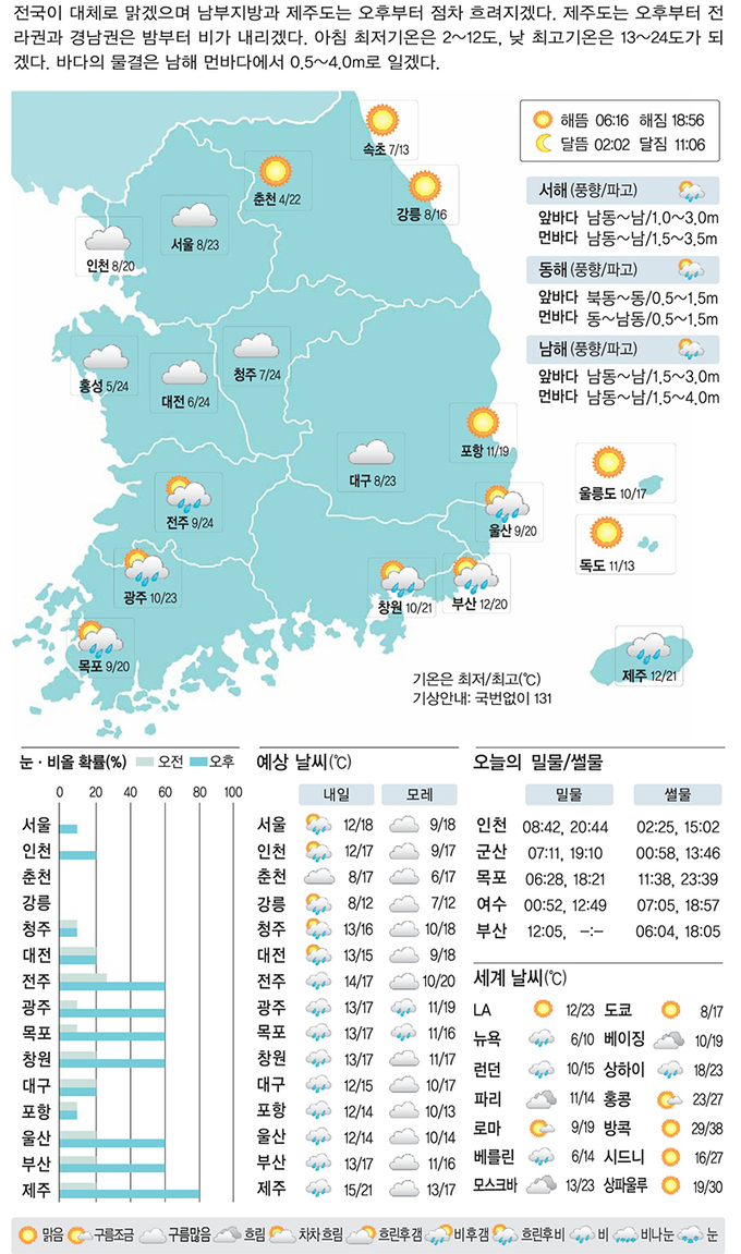 [2일의 날씨] 밤부터 촉촉한 봄비