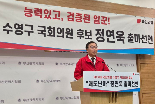 정연욱 국민의힘 부산 수영구 후보가 장예찬 무소속 후보의 단일화 제안에 "장 후보 스스로 사퇴하면 된다"고 지적했다.