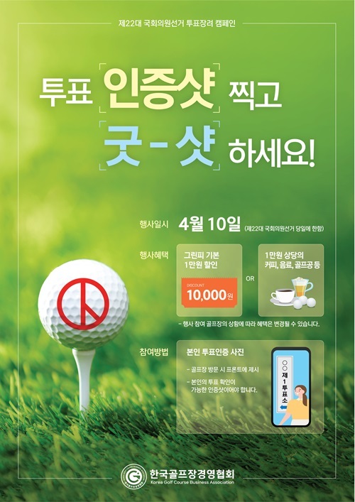 한국골프장경영협회는 제22대 국회의원 총선거 투표 장려 캠페인을 실시한다고 3일 밝혔다.