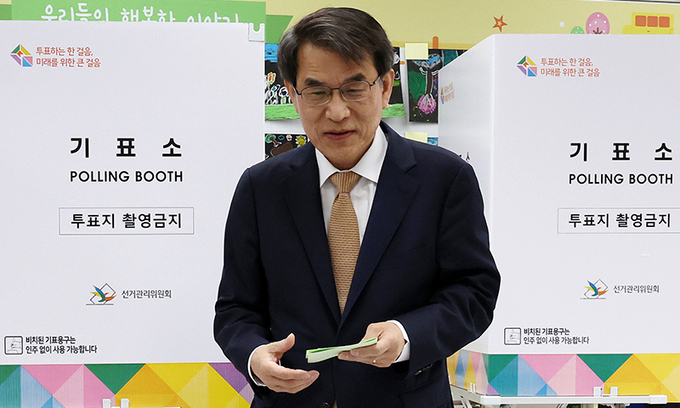 현직 대법관으로 투·개표관리를 총 책임지는 중앙선관위원장을 겸하고 있는 노 위원장은 짙은 정장 차림으로 투표장에 나와 한 표를 행사하고 근무자들을 격려했다.
