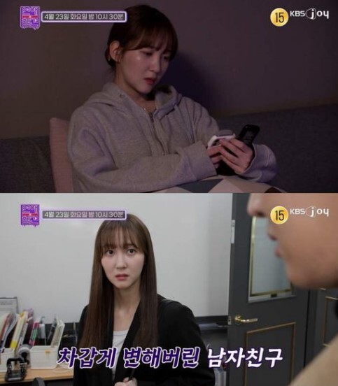 23일 밤 10시 30분 방송되는 KBS Joy ‘연애의 참견’에서는 여사친 전용 심부름꾼이 된 남자친구 때문에 이별에 대한 깊은 고뇌에 빠진 고민녀의 사연이 전파를 탄다.