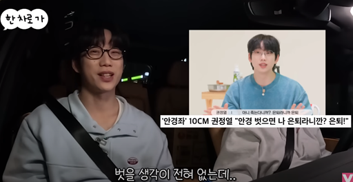 지난 7일 유튜브 채널 ‘비보티비’에서는 ‘가요계 대표 안경좌 10CM랑 한 차로 가’라는 제목의 영상이 게재됐다. 공개된 영상에서 권정열은 송은이와 동승해 솔직담백한 토크를 이어갔다.