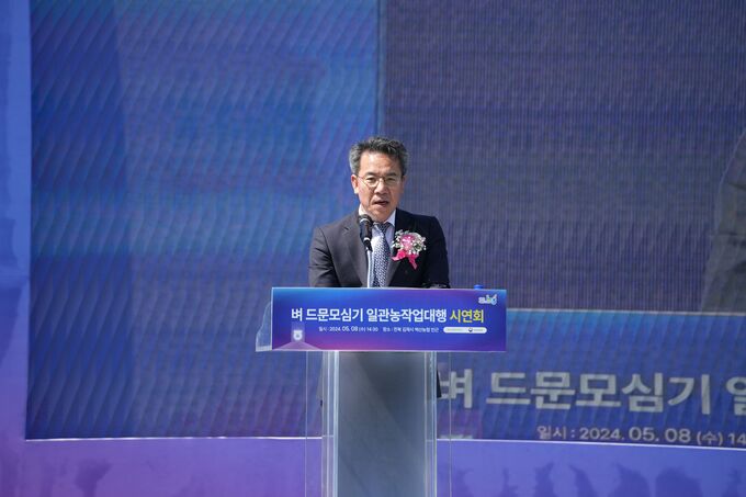 농협경제지주(농업경제대표이사 박서홍)는 8일 농촌진흥청(청장 조재호)과 함께 전북 김제에서 박서홍 대표이사, 조재호 청장, 이원택 국회의원, 정성주 김제시장 등 400여명이 참석한 가운데‘벼 드문모심기 일관농작업대행 시연회’를 개최했다.