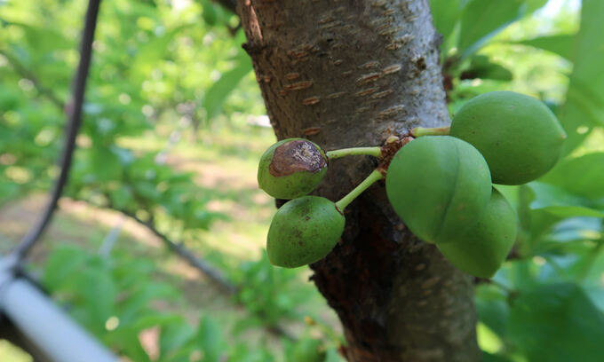 14일 경북농업기술원에 따르면 자두 잿빛무늬병은 주로 여름 장마기에 발생해 자두 수확기에 문제가 되는 병이다. 올해는 자두 개화기인 3~4월에 잦은 강우와 낮은 기온 탓에 예년보다 한 달가량 일찍 발생한 것으로 조사됐다.