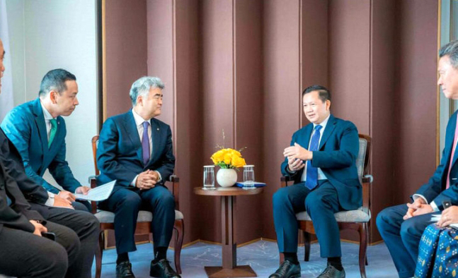 대우건설 정원주 회장이 17일 한-캄 정상회담을 위해 방한한 훈 마넷(HUN Manet) 캄보디아 총리를 소공동 롯데호텔 서울에서 예방하고 협력방안을 논의했다고 밝혔다.