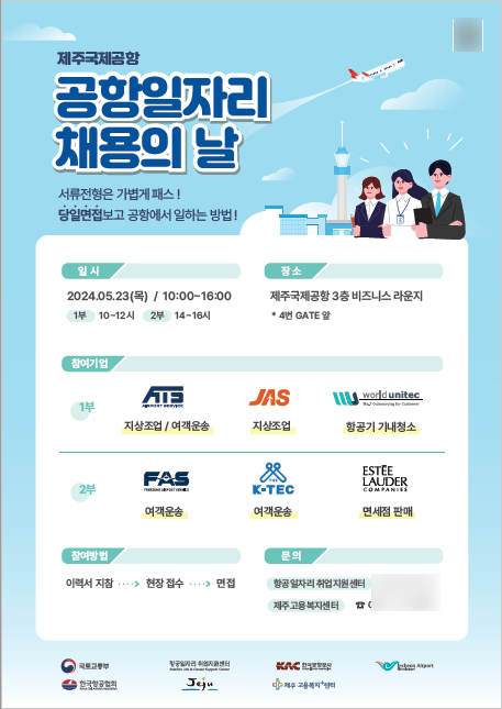한국공항공사는 23일 제주국제공항에서 ‘공항일자리 채용의 날’을 개최한다고 21일 밝혔다.