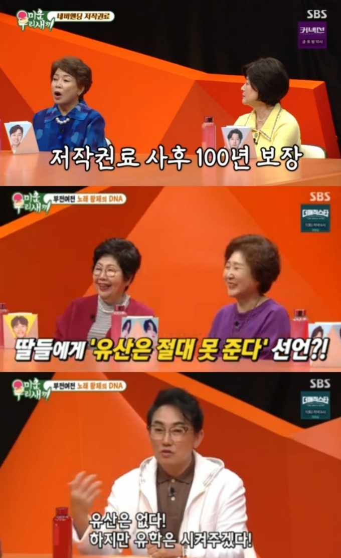 ‘미우새(미운 우리 새끼)’에 출연한 가수 이승철이 저작권료를 사후 100년 보장받음에도 유산을 딸에게 물려주지 않을 것이라고 선언해 많은 이들의 관심을 끌었다.