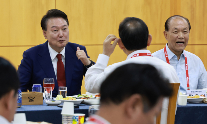 윤 대통령은 전날 충남 천안에서 1박 2일로 진행된 여당 연찬회에 참석했다. 윤 대통령은 “(테이블에) 맥주도 놓지 않아야 한다고 했는데, 오늘은 제가 욕 좀 먹겠다”며 “테이블마다 다니면서 맥주로 축하주 한 잔씩 다 드리겠다”고 했다. 윤 대통령은 의원들한테 “한몸이 돼서 나라를 지키고 개혁하며 미래를 위해 발전시키는 당이 돼야 한다”고 했다.