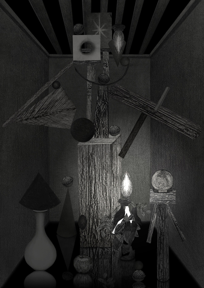 ‘디스턴트 룸_시그널’(2021∼2022)은 이승애가 자신의 지난 개인전 ‘서 있는 사람’(2023년 7월12일∼8월19일, 아라리오갤러리 서울)에 선보인 회화 작품 중 하나다. 향이나 초와 같이 작고 가느다란 사물들이 한껏 키를 키운 모습으로서 묘사된다. 여리고 소박하여 커다란 빛을 발산하기 어려운 대상들이 거듭 모여 외부의 세상과 “교신 가능한” 형태로서 재탄생하는 모습을 표현하고자 했다. 화면 좌측 상단에 쌓아 둔 작은 돌탑은 이름 없는 돌멩이 여럿에 담긴 소망을 저마다 종이 위에 탁본한 결과물이다. 나무의 결을 고스란히 품은 새와 식물들이 화면을 유영하는 가운데 향과 초가 지핀 불빛은 어느덧 연기가 되어 화면 높은 곳을 향하여서 피어난다. 섬세한 손으로 흑연을 어루만져 화면 위에 연기의 형상을 새기는 일은 사라지는 존재에게 영원의 숨을 불어넣는 회화의 또 다른 역량이다.