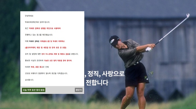 박세리희망재단은 홈페이지에 ‘박세리 감독은 국제골프스쿨, 박세리 국제학교(골프 아카데미 및 태안, 새만금 등 전국 모든 곳 포함) 유치 및 설립 계획·예정이 없다’는 공지문을 내걸었다.