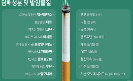 하지만 담배에 들어있는 유해물질의 수는 상상을 초월한다. 세계보건기구(WHO)에 따르면 담배와 담배 연기 성분에는 제1군 발암물질을 포함한 40여 종의 발암물질과 7000여 종의 유해 물질이 포함돼 있다. 이를 고려하면 우리가 알고 있는 담배 속 유해물질(8건)은 전체 유해물질 중 0.11%에 불과한 셈이다.