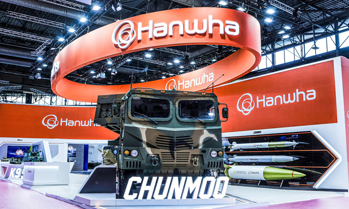 한화에어로스페이스는 이번 전시회에서 다연장 유도무기 체계인 천무를 유럽에서 처음으로 실물 전시한다. 사거리 80,