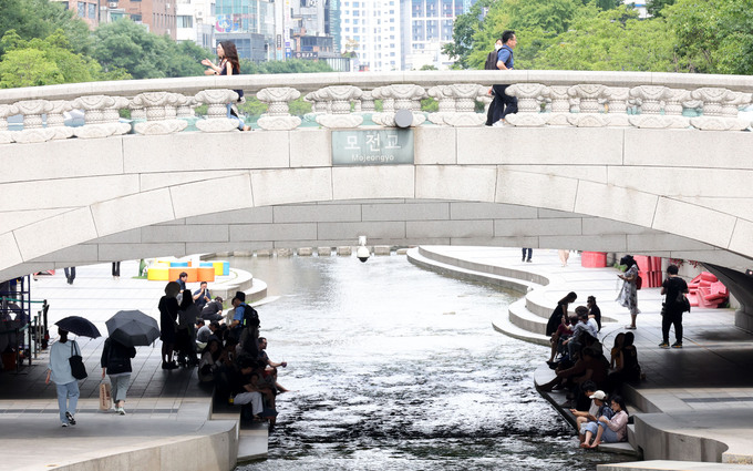 1년 중 낮이 가장 긴 절기상 하지(夏至) 이자 무더위가 계속된 21일 서울 청계천, 광화문광장, 서울광장 등 도심에서 시민들이 더위를 식히고 있다.