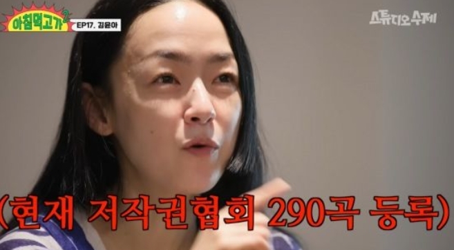김윤아는 25일 유튜브 웹예능 '아침먹고가2'에서 직접 작사·작곡한 노래가 290곡이라며 "자우림 정규 앨범이 11장, 제 정규가 다섯 장 이니까"라고 말했다.