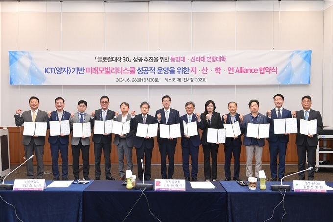 28일 부산시에 따르면 이날 오전 벡스코에서 부산시와 동명대-신라대가 성공적인 글로컬대학 추진을 위한 ‘양자(ICT)기반 미래모빌리티스쿨 지산학연 MOU’를 체결했다.