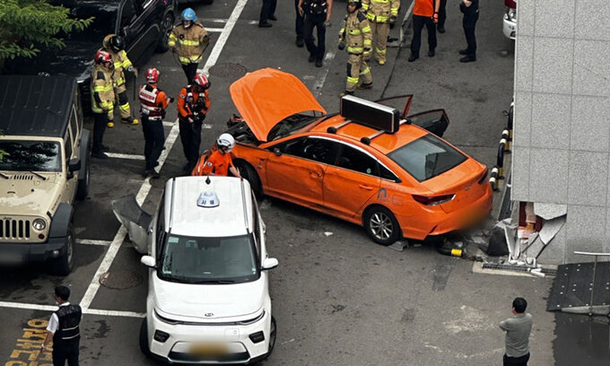 택시 기사 A씨는 손님을 내려주고 돌아가던 도중 보행자와 주변 차량 4대를 친 것으로 조사됐다. 차가 응급실 벽으로 돌진하면서 콘크리트 타일로 된 벽면도 파손됐다. A씨가 몰았던 택시는 앞범퍼가 뜯겨나갔고, 택시와 충돌한 차량은 뒤범퍼가 떨어져 나가기도 했다.