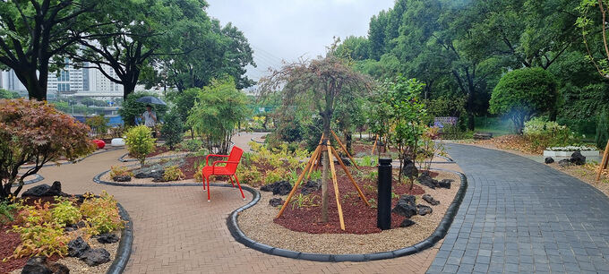 정원 곳곳에는 색감 있는 담장과 의자를 배치한 쉼터, 덩굴식물 지지대 등의 시설도 설치해 신천의 새로운 명소가 될 전망이다.