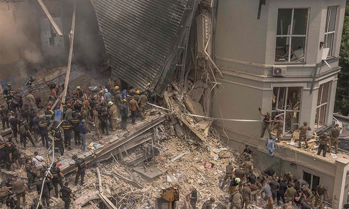 우크라이나 수도 키이우 중심부 어린이병원에 8일(현지시간) 러시아 미사일이 정통으로 꽂히는 등 러시아의 대규모 공습 당시 참혹했던 피해 상황이 알려지고 있다. 유엔 안전보장이사회는 9일 이와 관련한 긴급회의를 열었다.