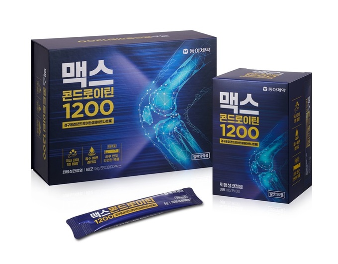 동아제약 관계자는 “퇴행성 관절염으로 고생하시는 환자분들을 위해 콘드로이틴 1일 최대 함량인 1200㎎을 함유한 신제품을 선보이게 됐다”며 “하루 한 포 겔타입으로 간편하게 복용가능한 ‘맥스 콘드로이틴 1200’으로 관절 건강을 챙기시길 바란다”고 말했다.
