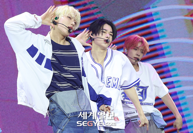 그룹 엔하이픈 성훈이 11일 오후 서울 송파구 방이동 SK 핸드볼경기장에서 열린 정규 2집 '로맨스 : 언톨드(ROMANCE : UNTOLD)'의 쇼케이스에 참석해 열띤 공연을 펼치고 있다.