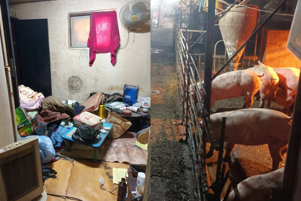 공개된 B씨의 숙소 모습은 처참했다. B씨는 돼지우리 한 귀퉁이에 있는 매우 열악한 환경의 숙소에서 지낸 것으로 확인됐다. 바로 옆에 돈사가 있어 방 안에서 악취가 진동을 했다고 한다. 공개된 숙소 사진에는 가로 2m, 세로 3m 정도의 좁은 방 내부에 잡동사니와 쓰레기로 가득 차 있는 모습이 담겼다. 옆에는 방의 절반 크기 정도 되는 열악한 주방이 있다. 화장실은 방과 다소 떨어져 있었는데 수도 시설도 제대로 갖춰지지 않았다. 한국말을 거의 하지 못한 B씨는 이웃이나 다른 태국인 근로자와도 거의 교류하지 않고 홀로 지낸 것으로 전해졌다. 그는 불법 체류자 신분이어서 관련 기관의 보호 대상에서도 제외됐던 것으로 알려졌다.