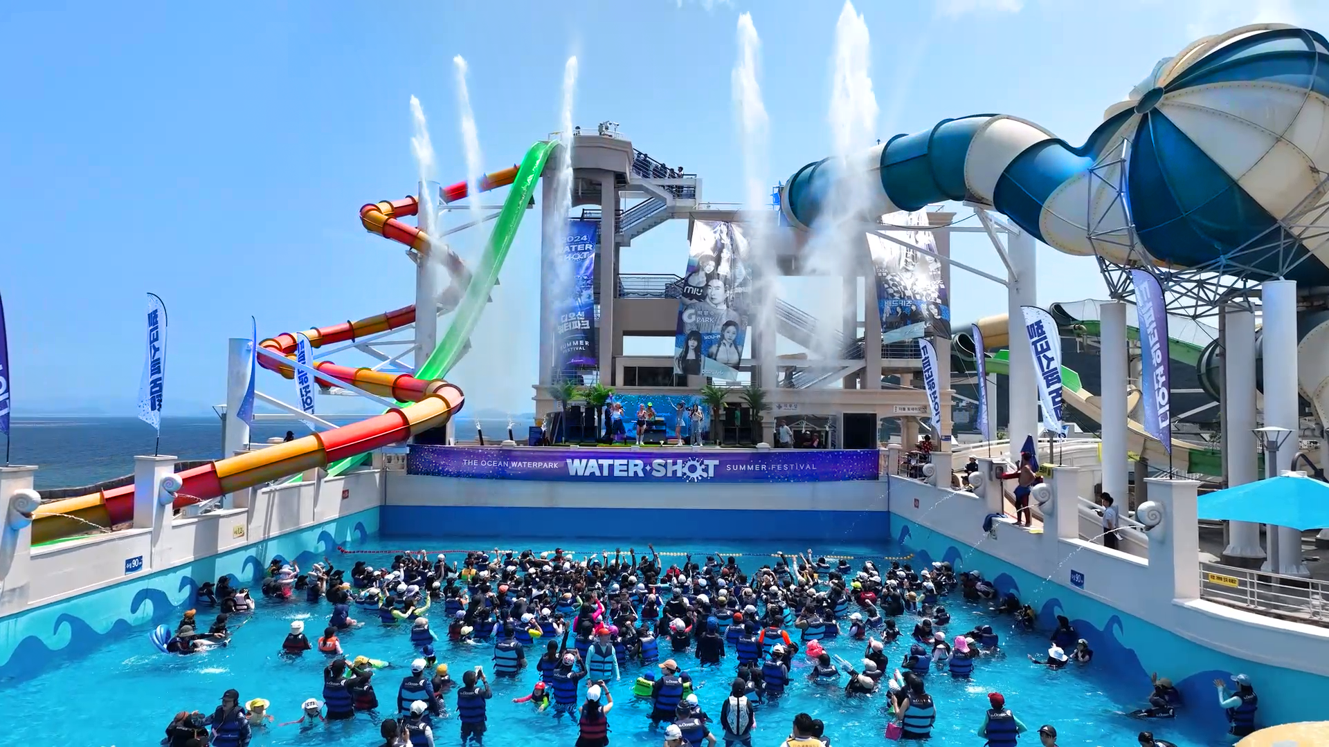 파도풀 특설무대에서 물대포와 DJ공연, 물총이 어우러지는 전남 여수 디오션 워터파크의 여름축제 ‘2024 워터샷 썸머 페스티벌’이 20일부터 8월 15일까지 27일간 매일 진행된다.