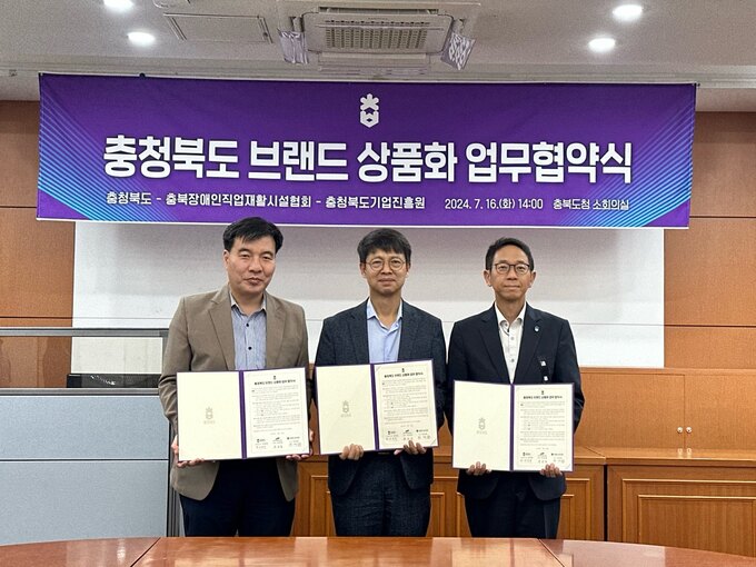 도는 16일 도청에서 충북장애인재활시설협회, 충북기업진흥원과 ‘충북도 브랜드 상품화 업무협약’을 체결했다.