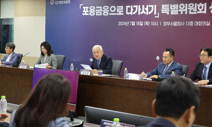 국민통합위는 18일 정부서울청사에서 ‘포용금융으로 다가서기’ 특위 제안 발표 및 성과보고회를 열고 지속 가능한 포용금융 관련 정책 제안을 발표했다. 특위의 정책 제안은 △정책금융의 지속가능 기반 강화 △금융서비스 사각지대 해소 △민간의 포용금융 역할 강화 △포용금융 혁신 생태계 조성이라는 4가지 방향에 중점을 두고 이뤄졌다.